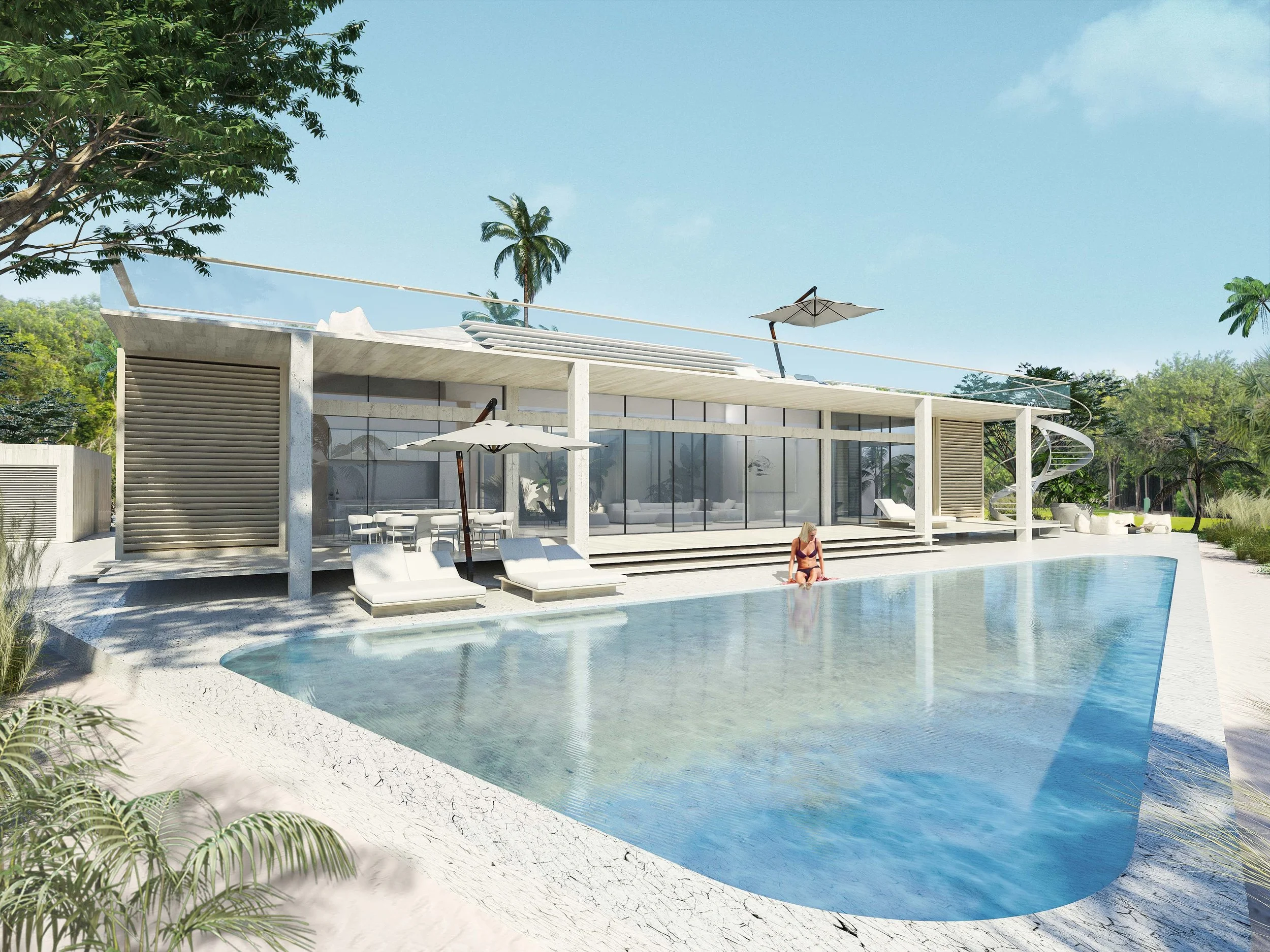 CAL designed this private family home located in Albany, on the island of Nassau in the Bahamas, with the goal of creating a seamless flow between indoor and outdoor spaces. By inscribing a circular core atrium within the building’s regular square plan, the interior environment is saturated with daylight, fresh air, and views onto varied landscapes. A stepped rooftop deck overlooks a scenic golf course that borders the site.