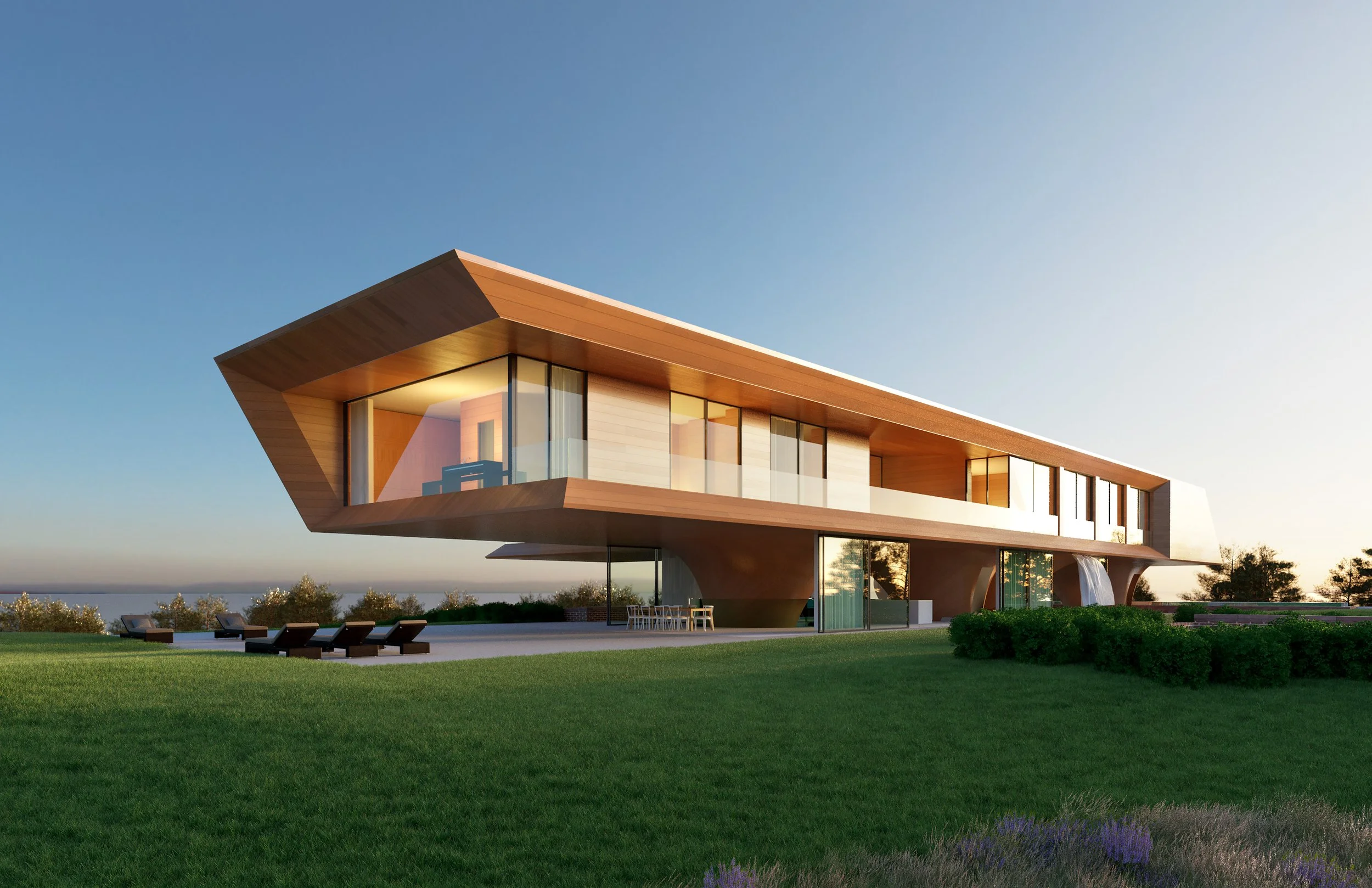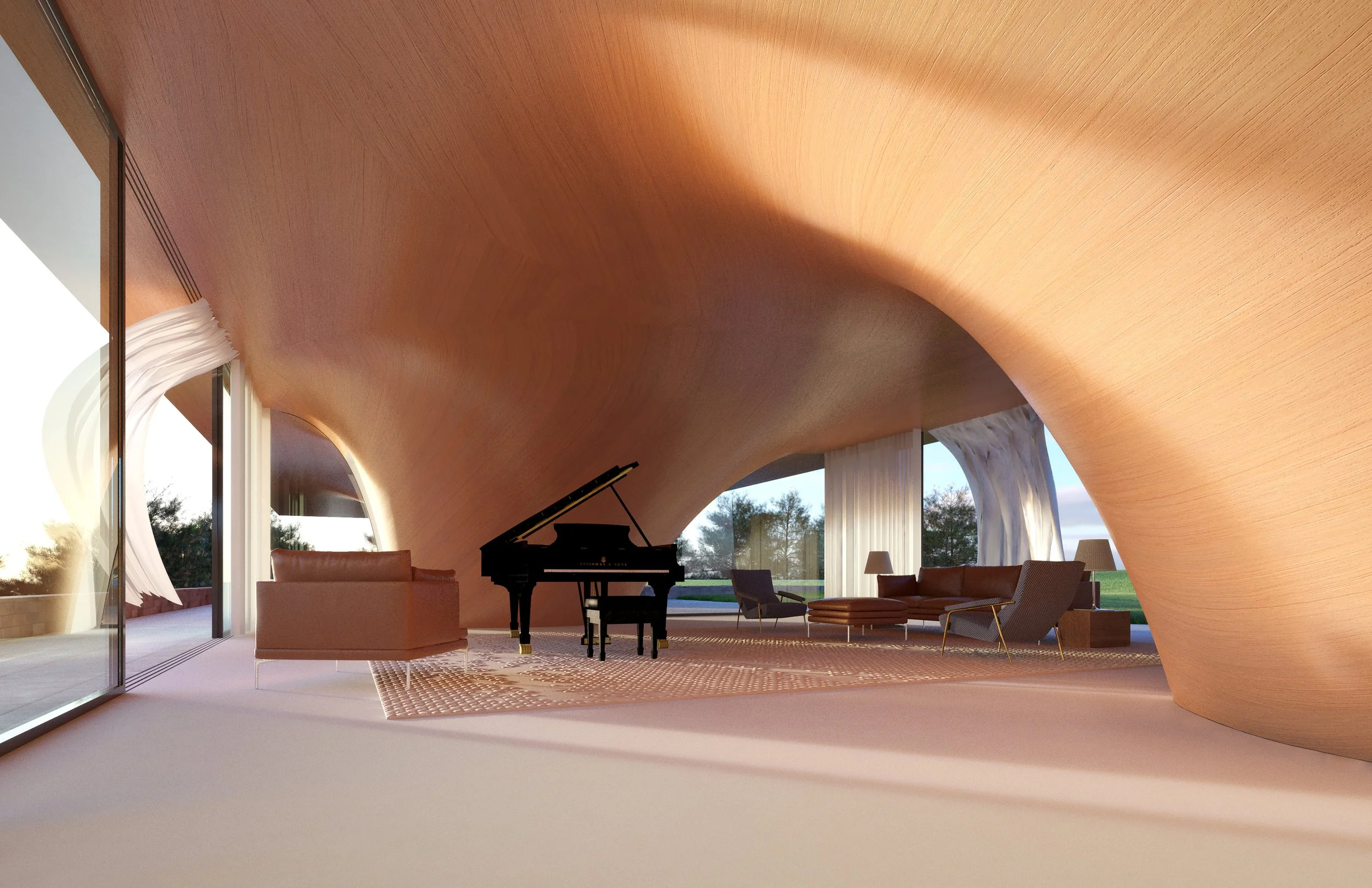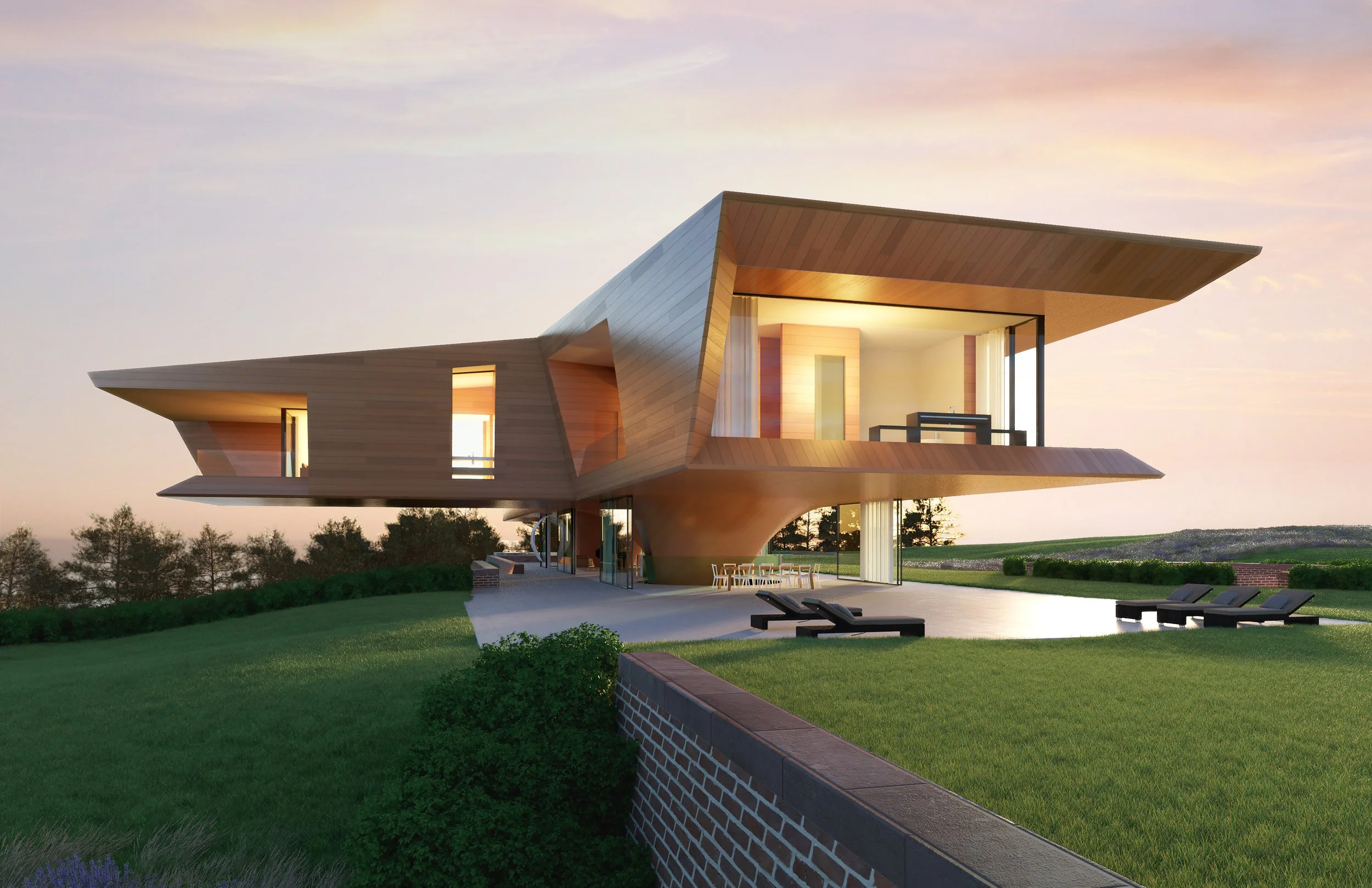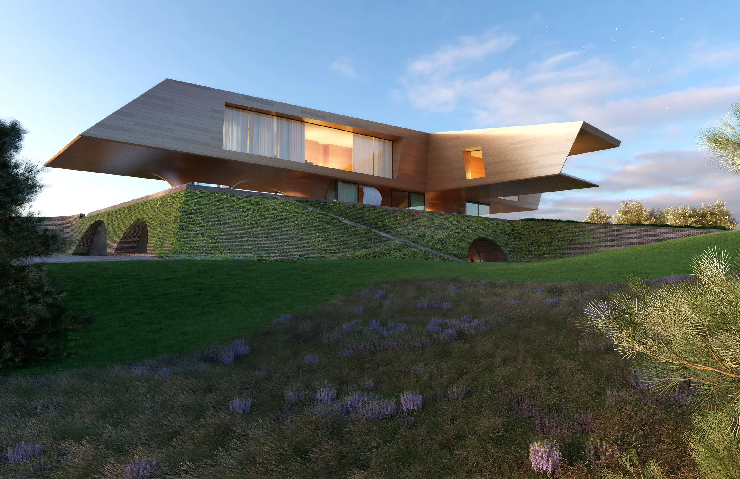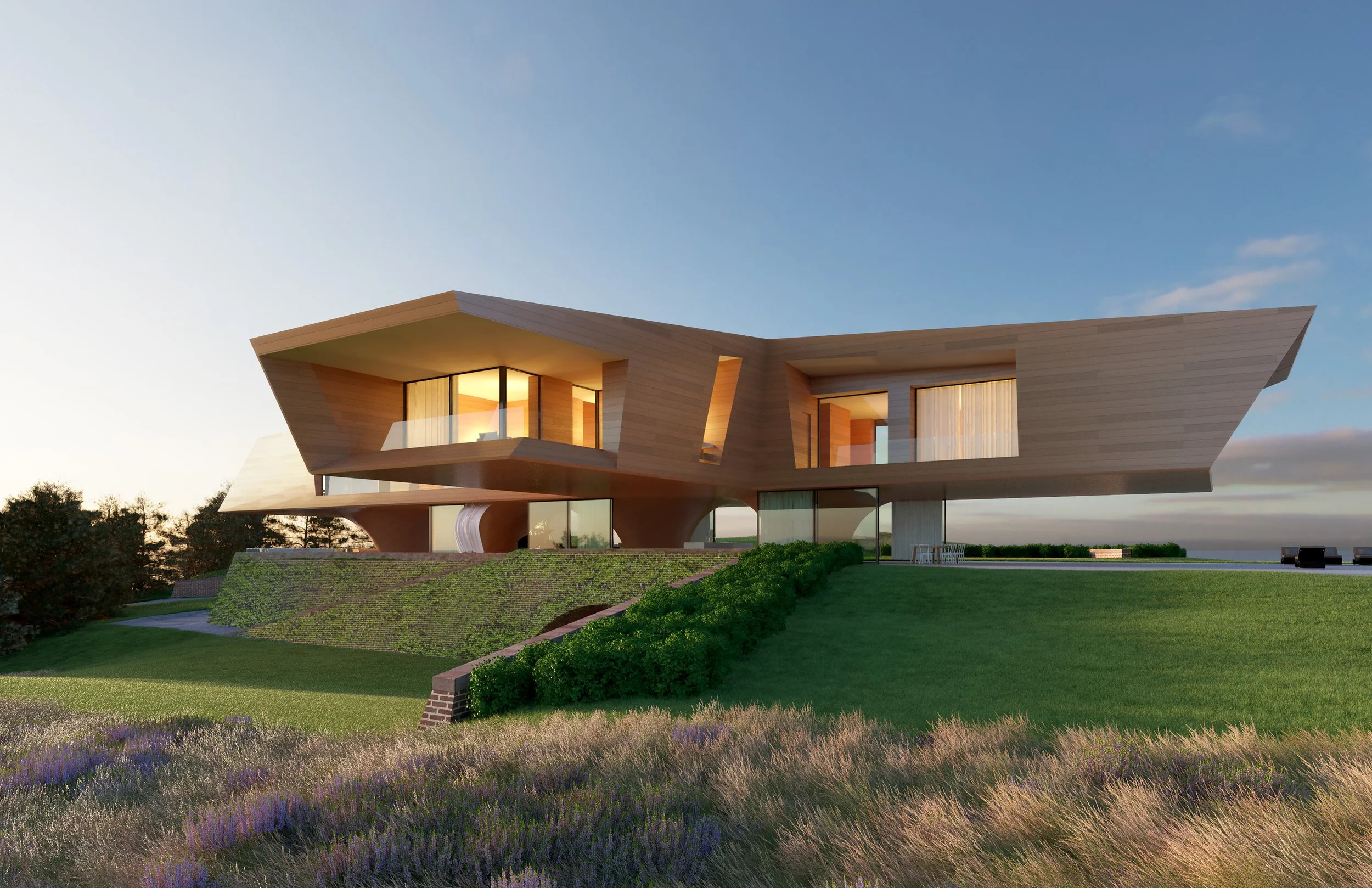 The Bridgehampton Residence is a private residence divided into two halves, a soaring above-ground living structure, and a below-ground amenity complex. The building was conceived to fully integrate entertainment and the arts, with a piano room, library, pool, and lounge areas that look over expansive views